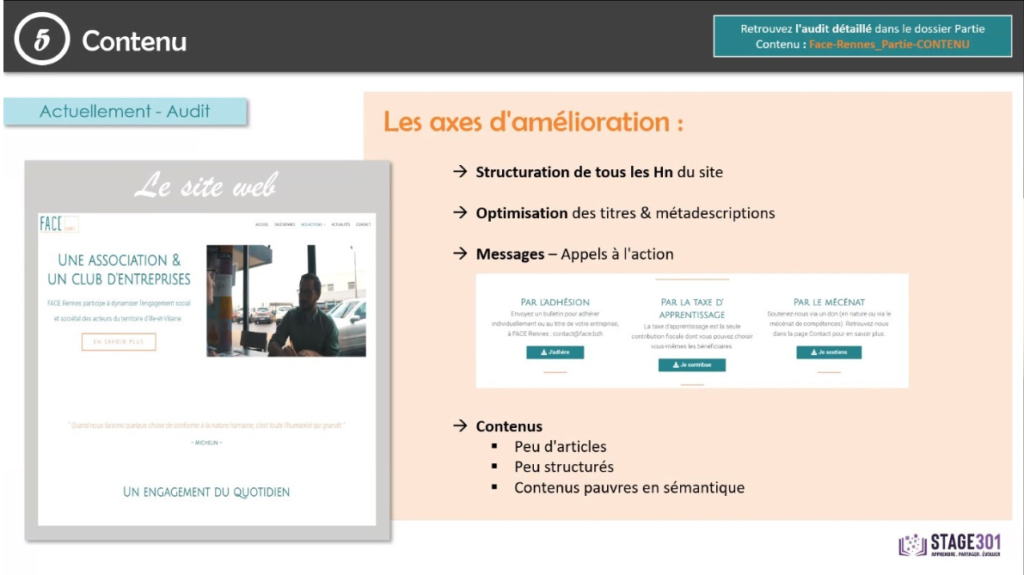 L’association FACE accompagne et facilite l’insertion professionnelle des différents publics fragiles. L’équipe d’apprenants 301 a alors proposé une stratégie digitale adaptée à cette association.